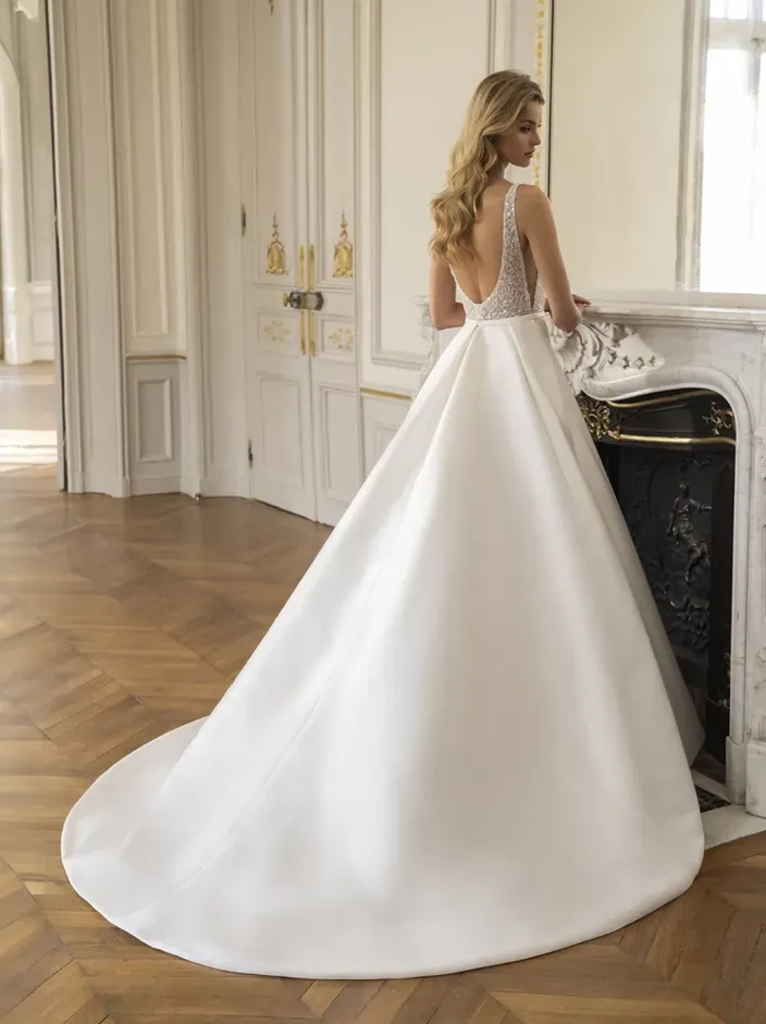 These gowns feel modern, polished, and intentional, ideal for brides who want their look to feel elevated and timeless without excessive lace or sparkle.