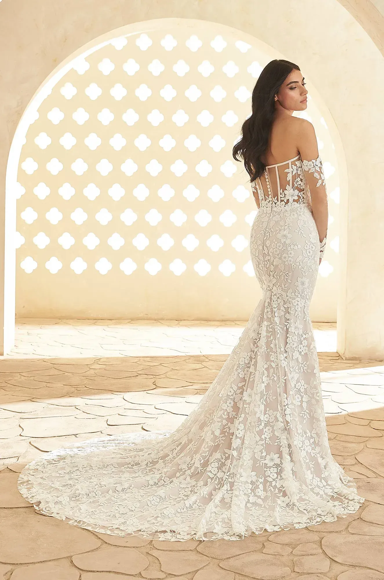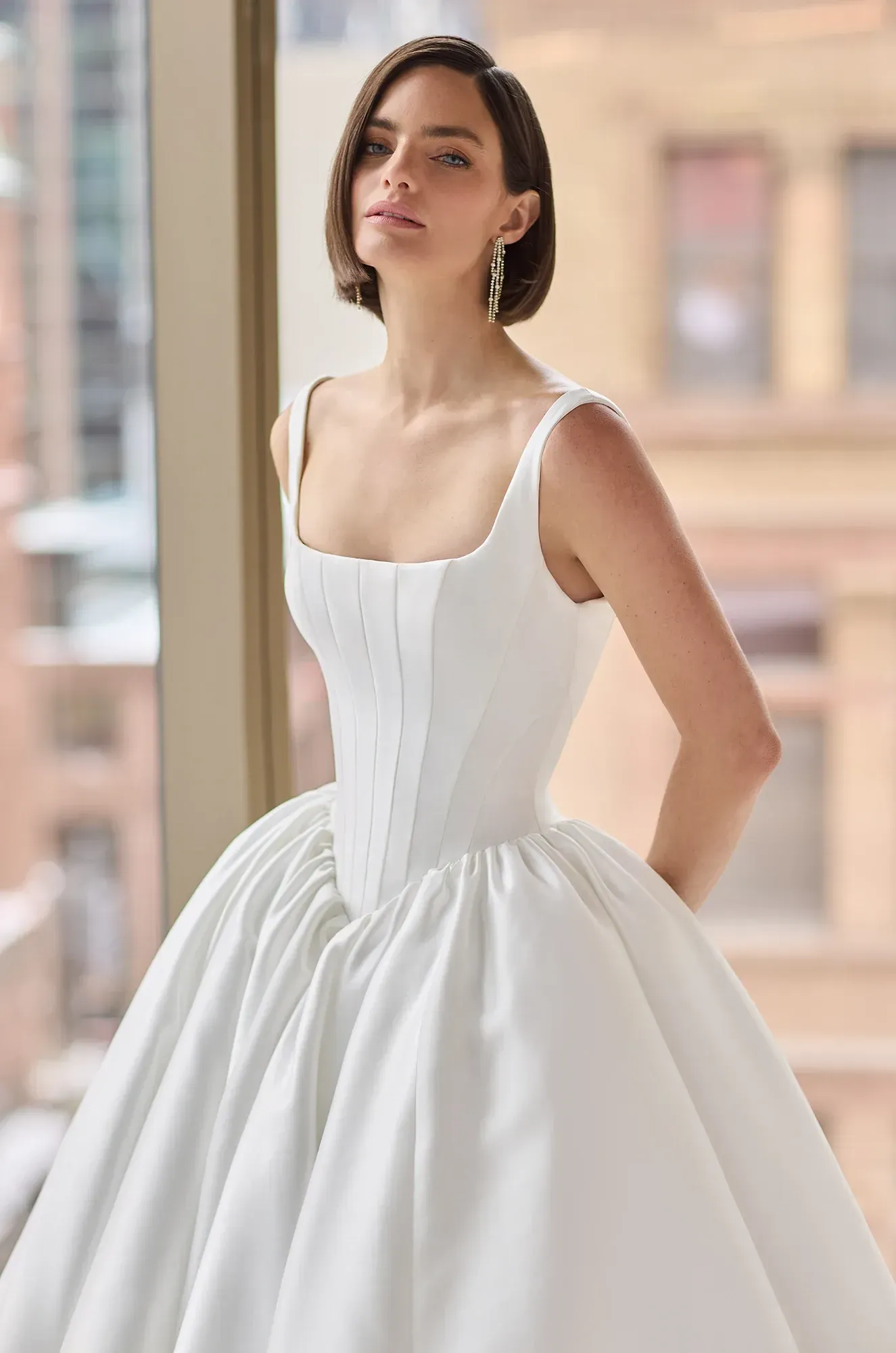Paloma Blanca is known for its refined craftsmanship and elevated use of fabric. Designed and produced with meticulous attention to detail, the collection focuses on proportion, structure, and timeless bridal elegance.