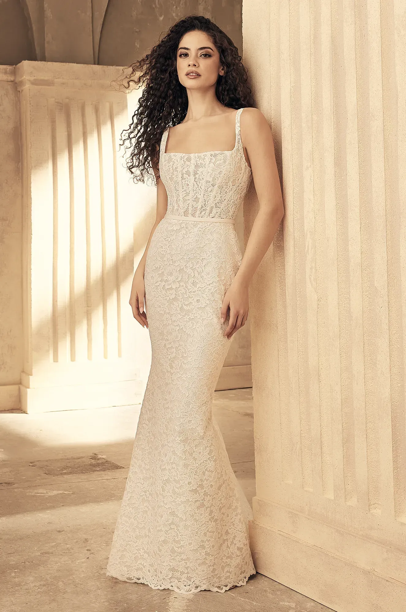 From classic satin ballgowns to softly structured A-lines and sculpted silhouettes, Paloma Blanca gowns feel polished and enduring, created for brides who appreciate tradition with a modern sensibility.